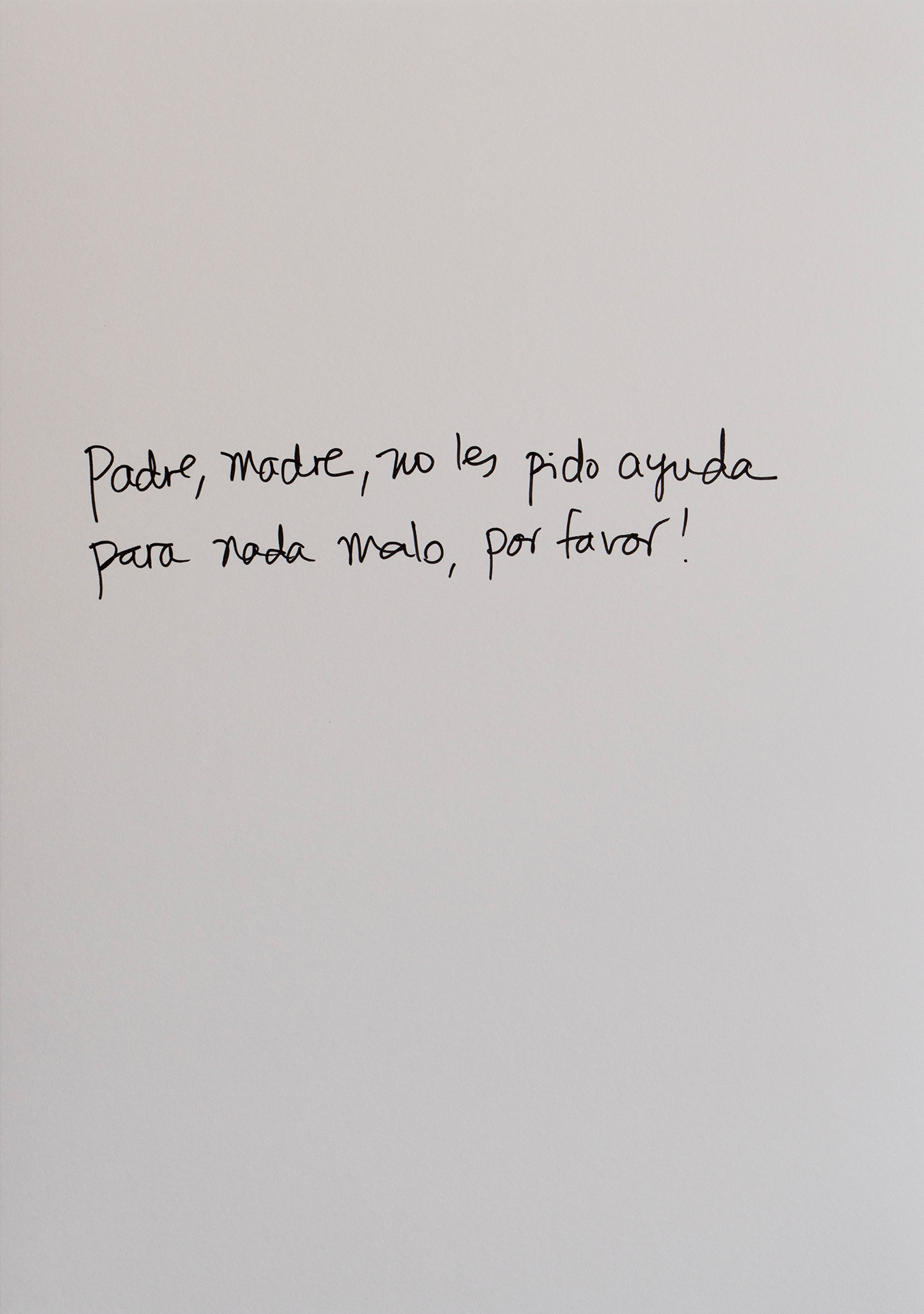 - ¡Padre, madre, no les pido ayuda para nada malo, por favor!