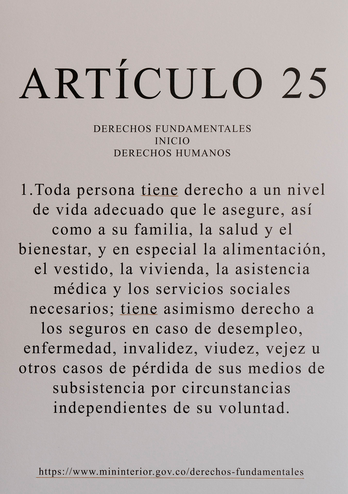 Mientras todos cuidamos nuestro núcleo familiar e intentamos mantener sano nuestro cuerpo físico y emocional, en la calle la lucha es otra. La pobreza se vuelve paisaje, el silencio de la gente se rompe y su lamento se alza en cada rincón de la ciudad.Ya no se puede vivir aislado de la realidad socio-económica del país. Cada uno de los derechos fundamentales firmados por Colombia ante la ONU han sido vulnerados.