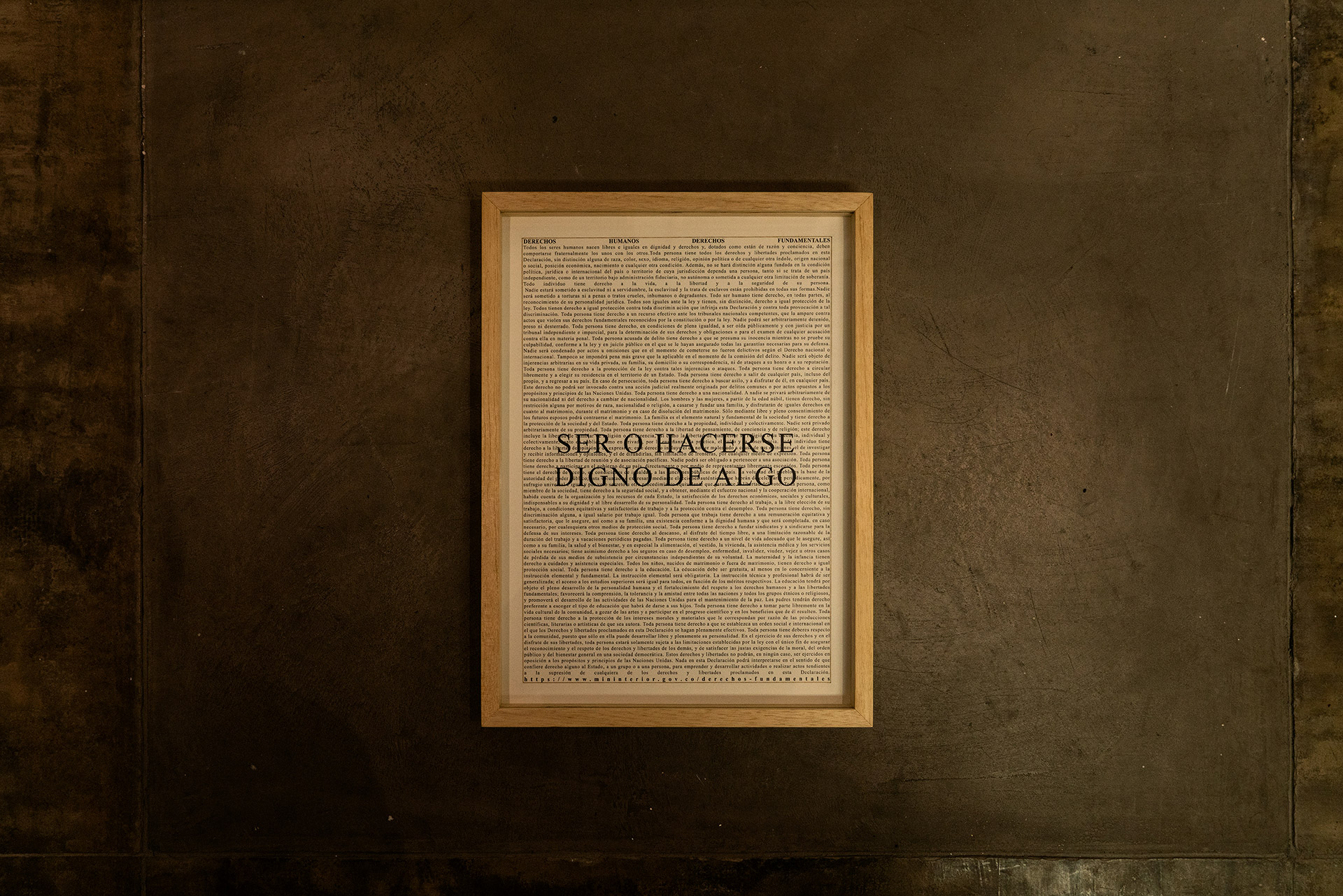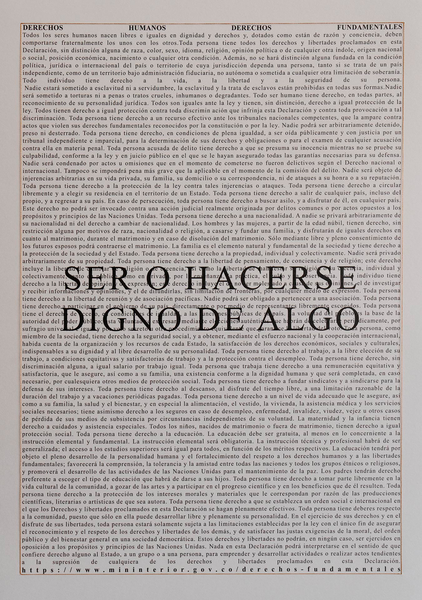 - “Ser o hacerse digno de algo” impresa sobre toda la declaración de los derechos.
