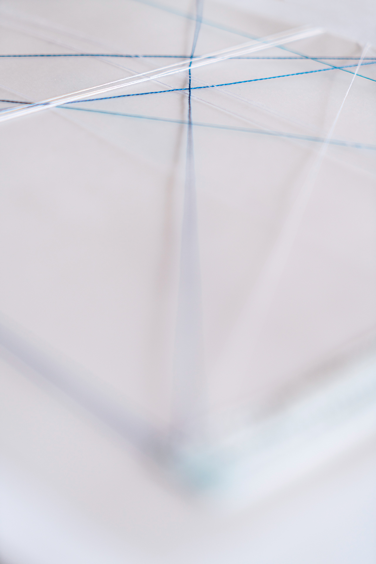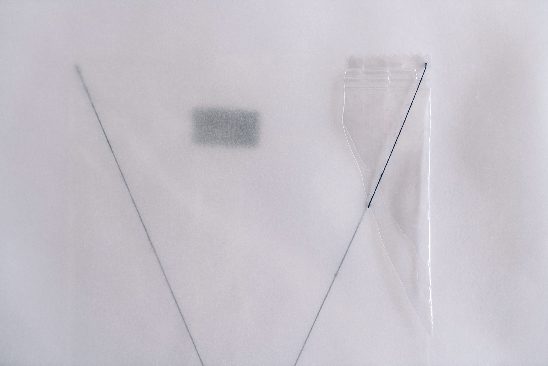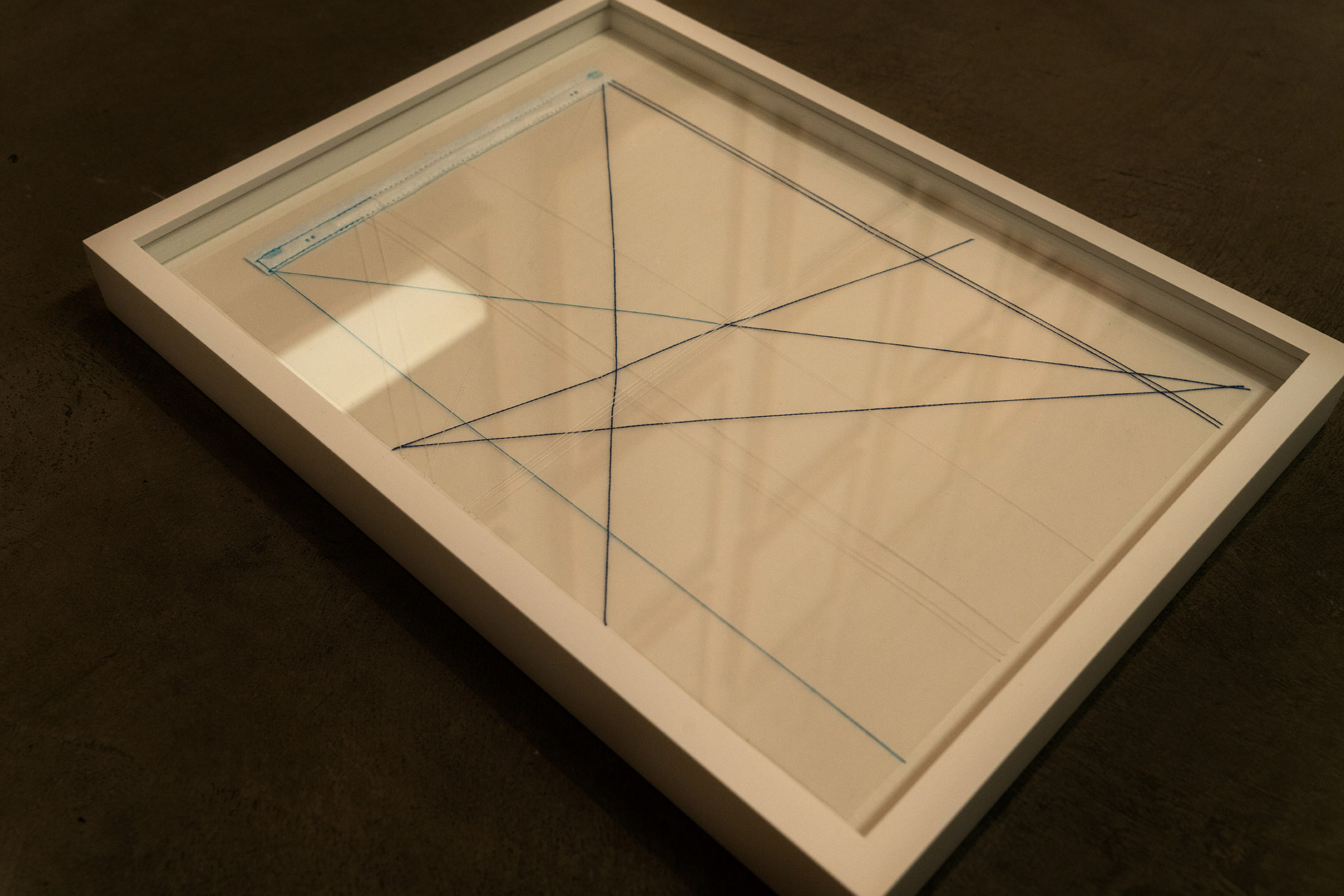 Primera parte: está compuesta por 10 intervenciones sobre papel. La base es un tapabocas desmembrado y bordado sobre papel y hace referencia directamente al Covid, al bordado y a todo lo abstracto que descansa en esta coyuntura y que aún no logramos entender. El color de los hilos los escogí pensando en las tonalidades del tapabocas.