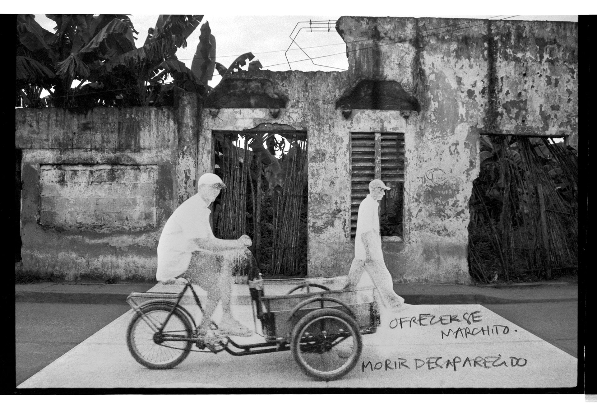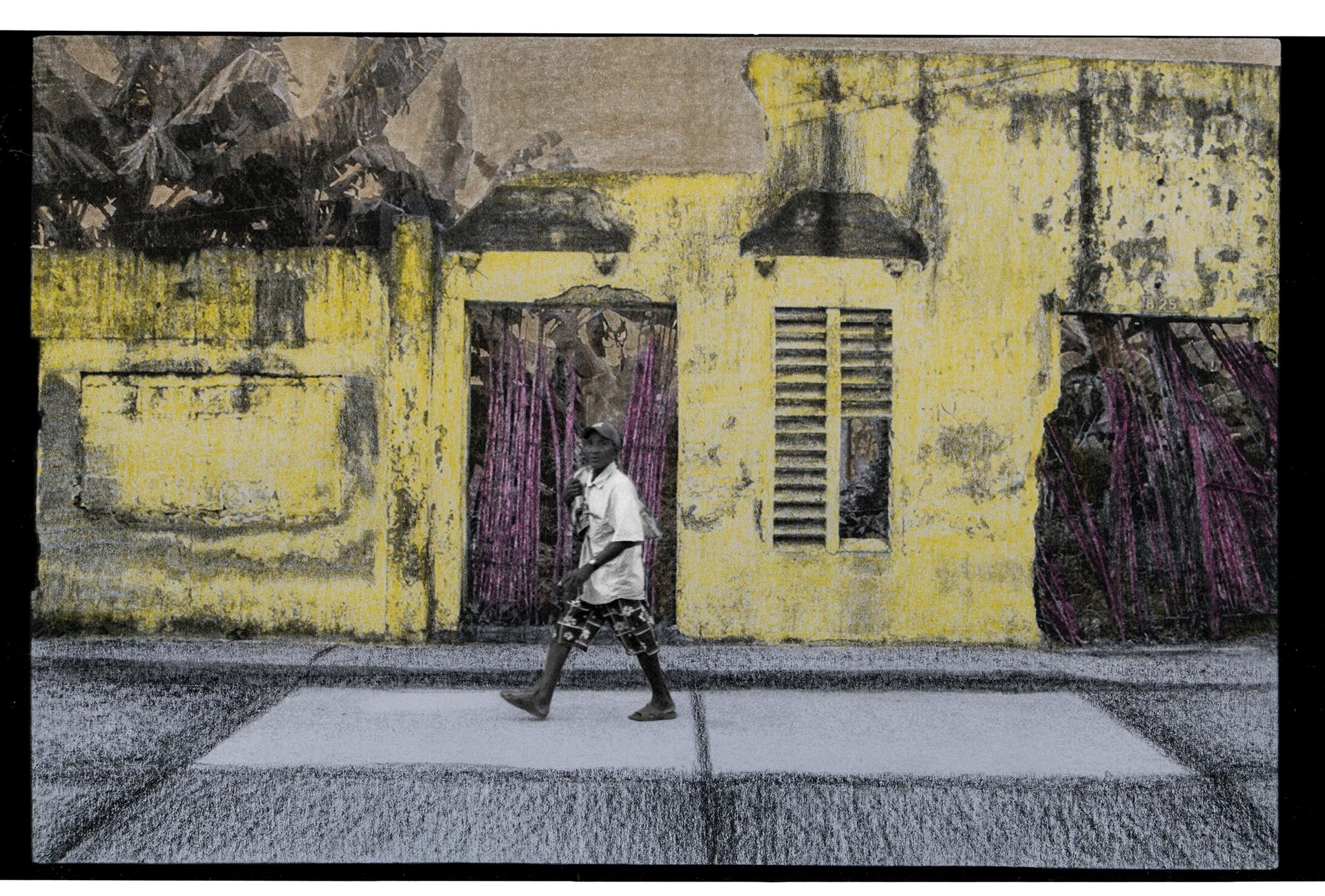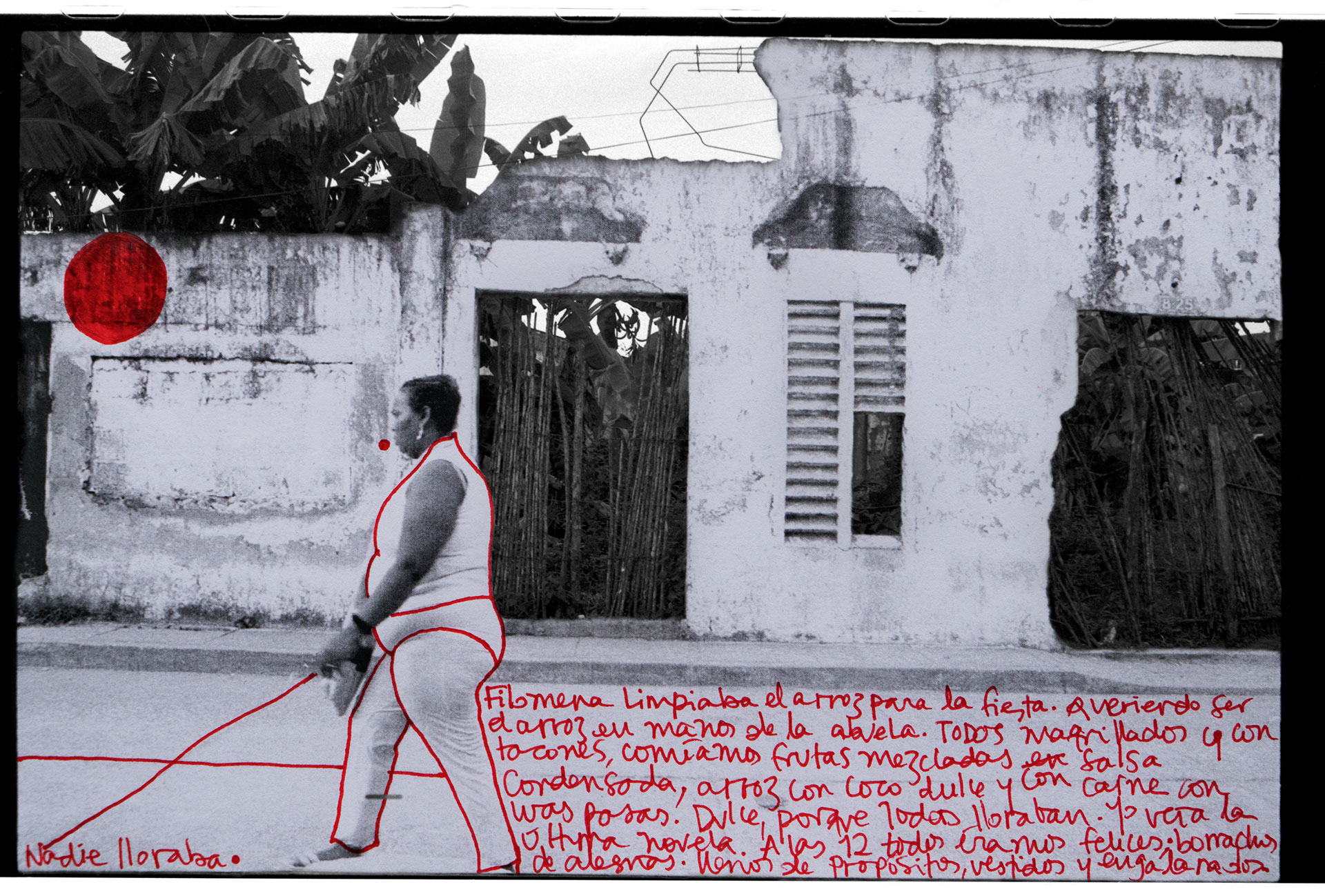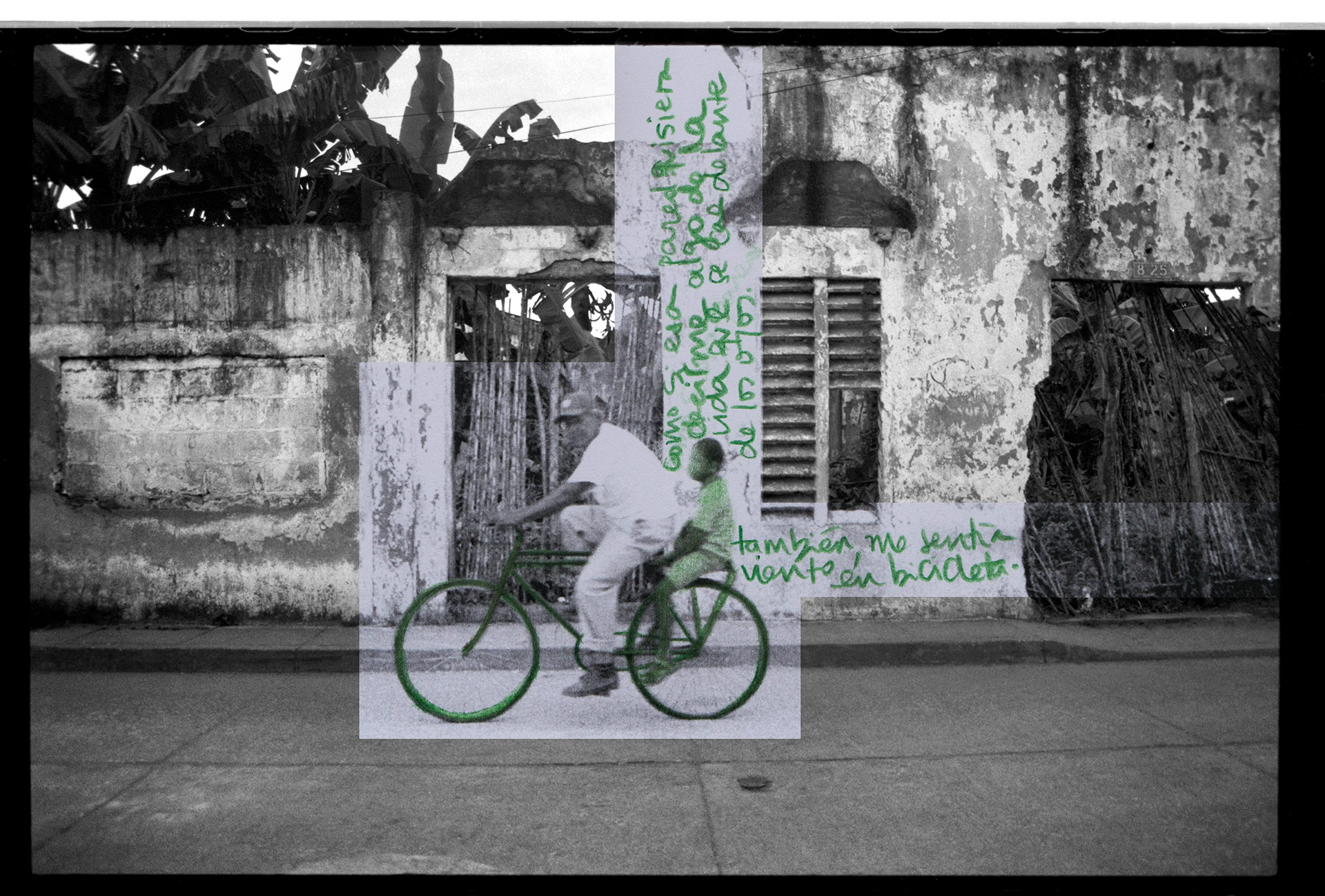 Una pared puede tener muchos significados. Históricamente, se han erguido como superficies divisorias, como objetos que denotan un límite y también, como construcciones que invitan al misterio, porque sabemos que detrás de ellas se oculta algo que no está al alcance de los ojos. “La pared del Viento” nace como un ejercicio de observación de la pared vecina del lugar de infancia así como de las personas que transitaban por él. Dicho ejercicio despertó en mi memoria un sinnúmero de recuerdos que decidí plasmar bajo la forma de texto, dibujo y yuxtaposición de imágenes sobre unas fotografías que había tomado en años anteriores. Desde aquellas épocas, pensaba la pared como un ser móvil, por esta razón la imagen no es siempre la misma aunque se pueda notar fácilmente que fueron tomadas en el mismo lugar. Estas imágenes, terminan siendo el lienzo en donde me atreví a contar fragmentos de mi historia personal. Recrearlas se convirtió en recrear algo en mí, y en el ejercicio de desempolvar un pasado, se vislumbró parte de un subconsciente social como es el caso de los desaparecidos, la violencia sicológica contra la mujer y el cotidiano simple de un pueblo pobre y olvidado de la costa caribe de Colombia. “La pared del Viento” es un ejercicio de observación donde la pared termina siendo un recurso para la creación y donde unos tras otros disolvemos el espacio y lo convertimos en nada y a su vez, en un mundo de posibilidades.