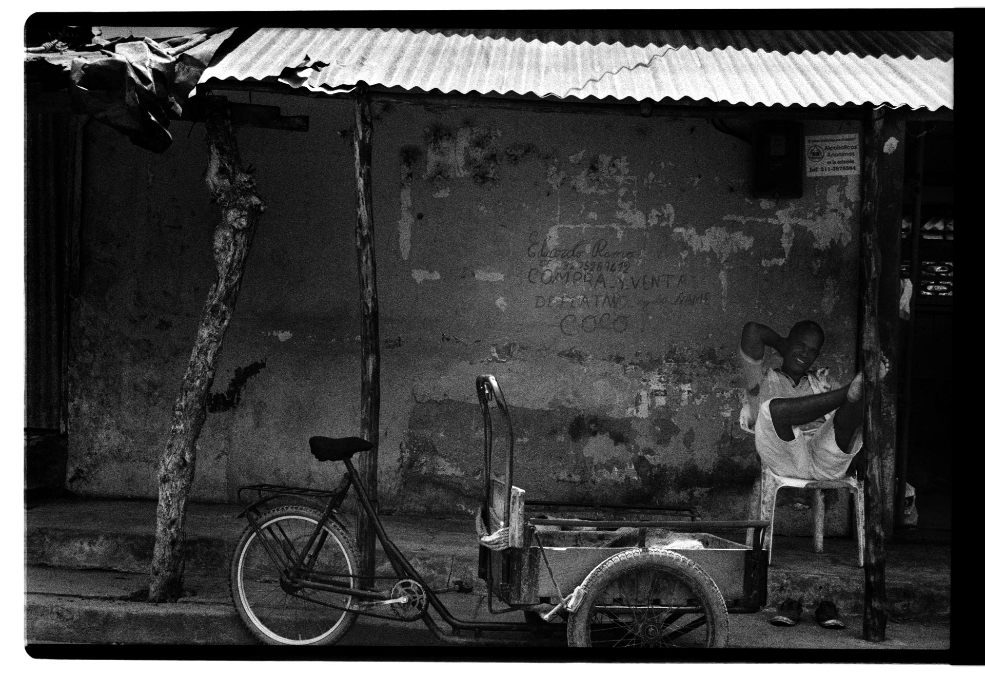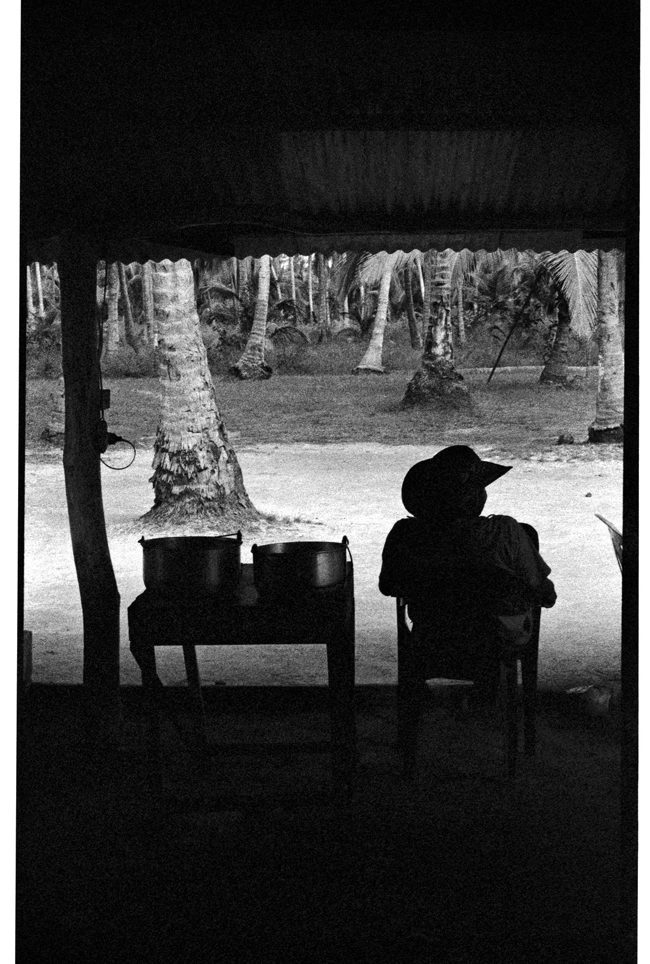 San Bernardo del Viento es el nombre de un pueblo pequeño situado en la costa caribe de Colombia y es el lugar de origen de mi linaje paterno. Años de volver al mismo sitio me hicieron llegar a la conclusión de que no siempre la realidad se presenta como el cine de ficción que trae consigo un inicio, un nudo y un desenlace. Este proyecto es una invitación para recogerse en lo simple. Un alimento para el aburrimiento, un espacio para observar, para escuchar las voces del folclor, una invitación a la ligereza que trae la mente vacía, el encuentro con la quietud y la soledad. Un retrato de un imaginario que aburre, que se aburre, pero que se acepta. Donde los paisajes no se mueven y en donde pareciera que la Impermanencia del tiempo no los tocara, llenos de estatismos, de sonidos de loop, de entierros repetidos con los mismos cánticos y con los mismos vestuarios de antaño. Incomunicados con el mundo, haciendo parte de una ceremonia solitaria. Es la huída de la ciudad en donde todo se caduca y en donde todo se reemplaza. San Bernardo es recordar que los objetos se pueden reparar, que el amor puede reparar. Que la amistad puede reparar. Que el humor puede reparar y que también, el recogimiento en el silencio construye. Aquí no se espera a que pase algo; la vida simple del pescador que pesca, la hamaca que se mece, el niño que juega, la palmera que ofrece cocos y el campesino que los recoge. Los árboles y su inmenso verde. Las conversaciones surreales alrededor del pepino y la importancia que tiene la papaya en la salud. San Bernardo ofrece siempre el mismo resultado, las mismas respuestas y las mismas preguntas. Sin embargo, entrar en San Bernardo del Viento es como entrar en una meditación. Llegarás siendo uno y saldrás siendo otro.
